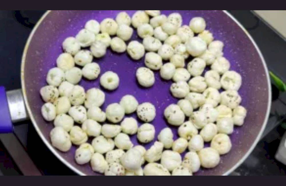 एक पैन में 2 कप मखाना डालकर धीमी आंच पर 4 से 5 मिनट तक ड्राई रोस्ट करें।