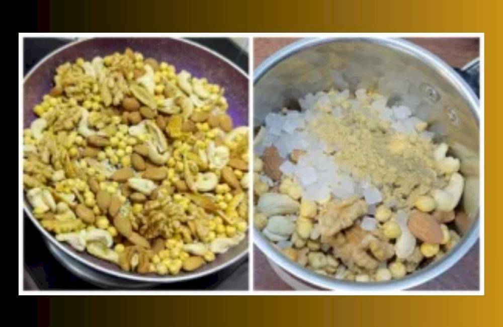 Homemade Dry Fruit Powder को बनाने के लिए बादाम, काजू, मखाना और सूखे खजूर जैसे मेवे का इस्तेमाल किया जाता है।