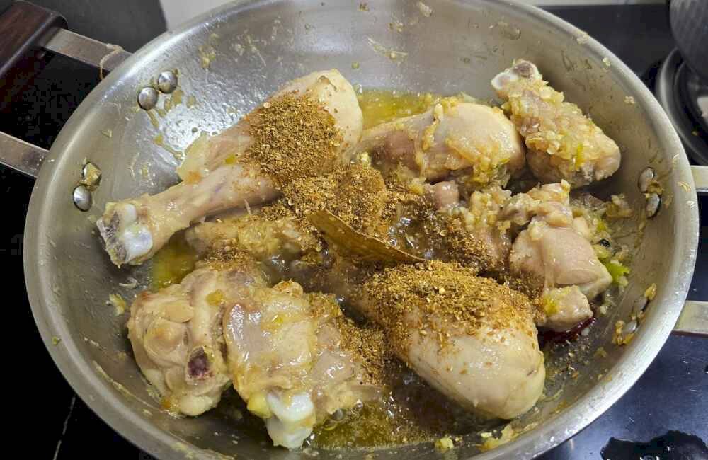 Add freshly ground powder to the chicken. Mix well and cook for another 5-7 minutes on medium flame.
