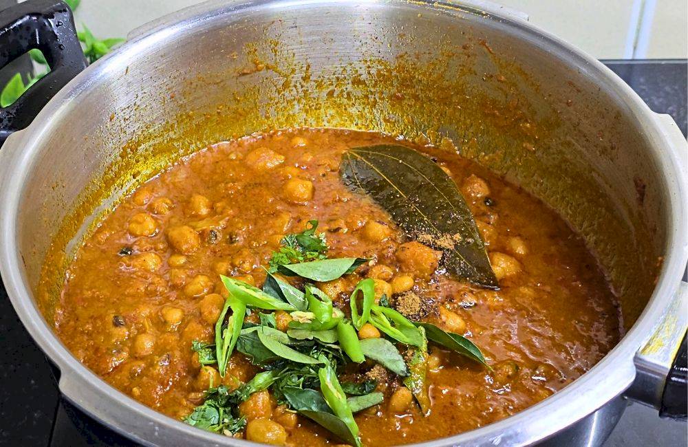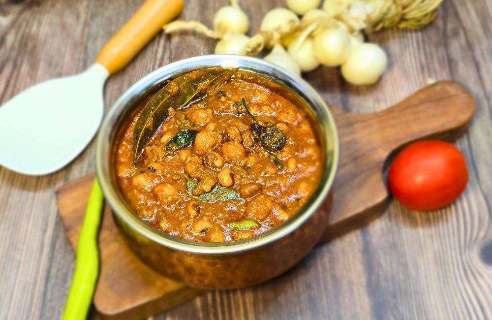 The base of this curry is built with whole spices like cardamom, cloves, black pepper, and bay leaf, all gently sautéed in oil to release their aroma. Then comes the classic Indian flavor trio: onions, ginger-garlic paste, and tomatoes. This creates a deep, savory masala that forms the soul of the dish. The soaked chickpeas and lobia absorb this masala as they cook under pressure, becoming soft, flavorful, and deliciously spiced from the inside out.